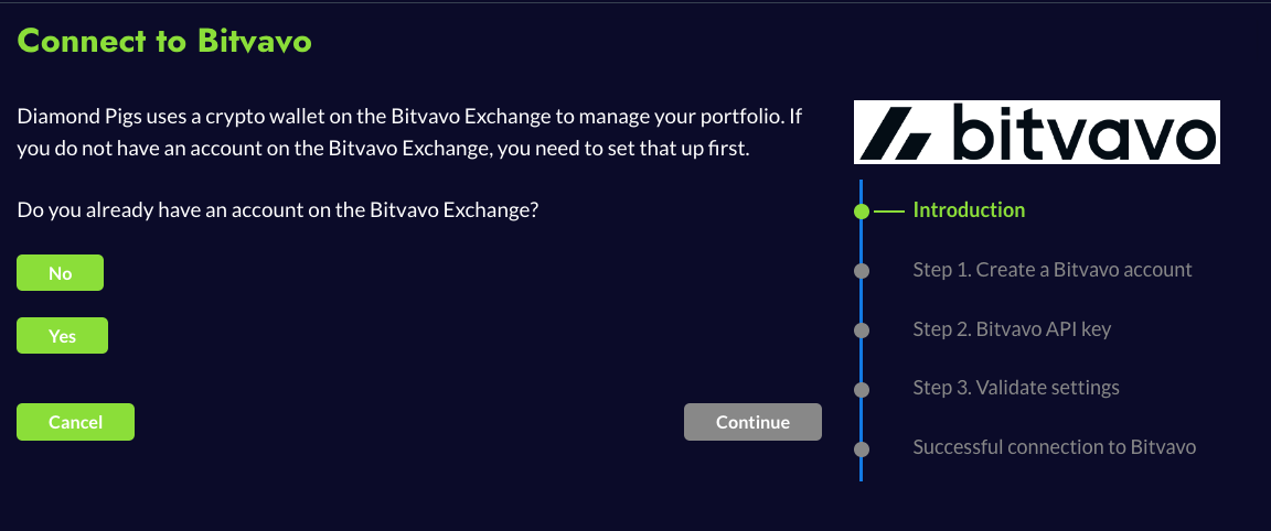 Étape 2 : Connectez Diamond Pigs à votre compte Bitvavo