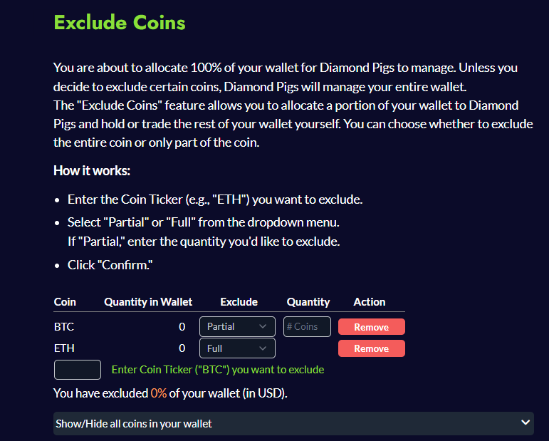 Oui. Grâce à l’option Exclure des coins, vous décidez quels actifs restent en dehors de la gestion automatisée.